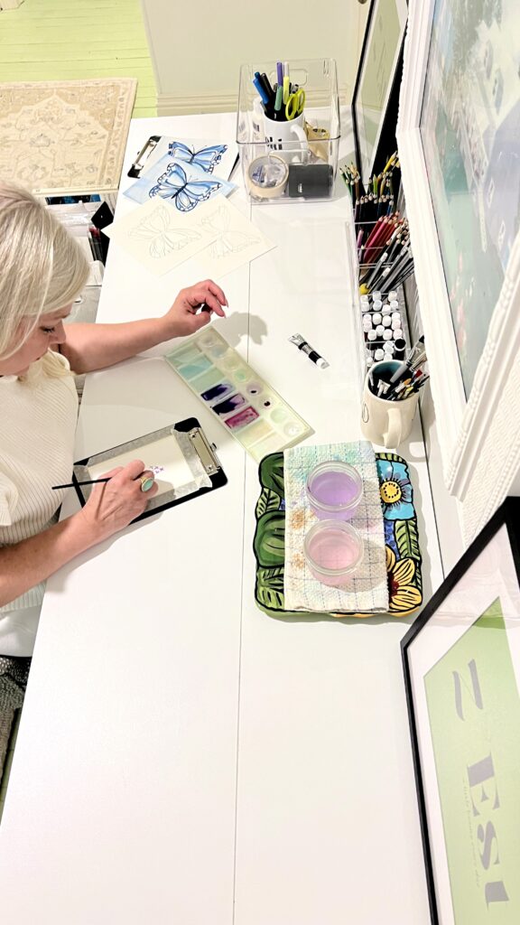 I witness more than I direct. The colors teach me how they want to blend, how they play with the water and settle into soft edges. Some mornings I discover an entirely new palette that becomes the heart of a future collection.